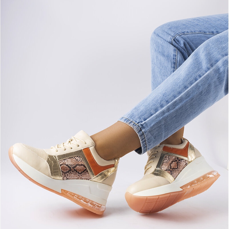 Izrađene od visokokvalitetne ekološke kože, tenisice nude ne samo estetski izgled, već i izdržljivost. Dodatna prednost je praktična klinasta potpetica koja pruža stabilnost i potporu stopalima. Bež boja sa zlatnim detaljima čini ove cipele savršenim za različite stilove, kako ležerne tako i elegantnije.