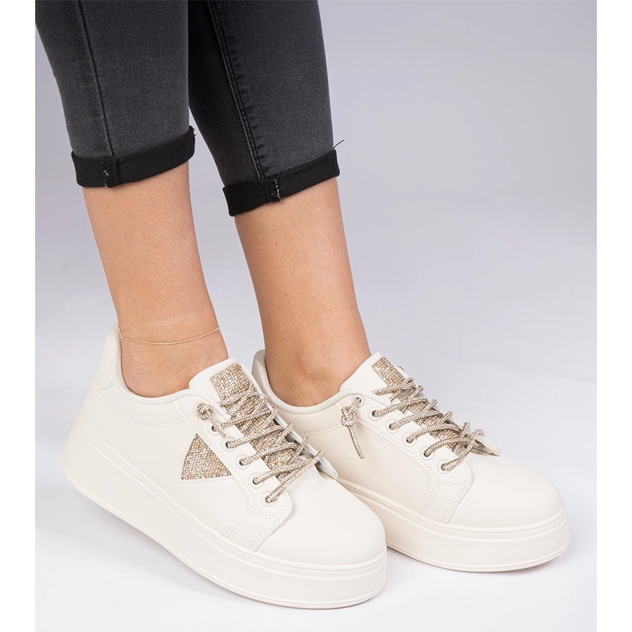 ** Bež tenisice s zlatnim cirkonima - savršena kombinacija stila i udobnosti **