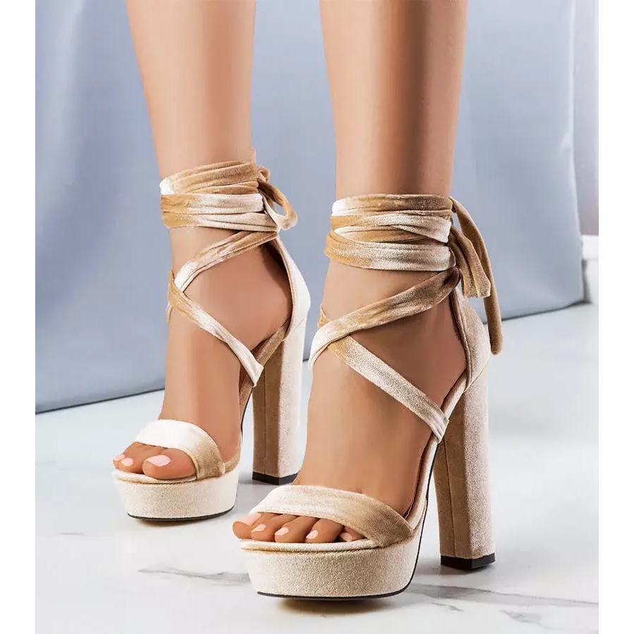 PA1 PA1 Bež visoke sandale na vezanje marke Dax