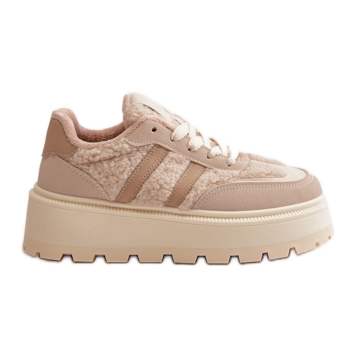 Inna marka Bež ženske izolirane tenisice na platformu s ovčjom kožom Daivlene