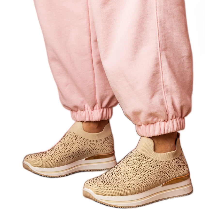 Inna marka Bež ženske tenisice na platformi s cirkonima