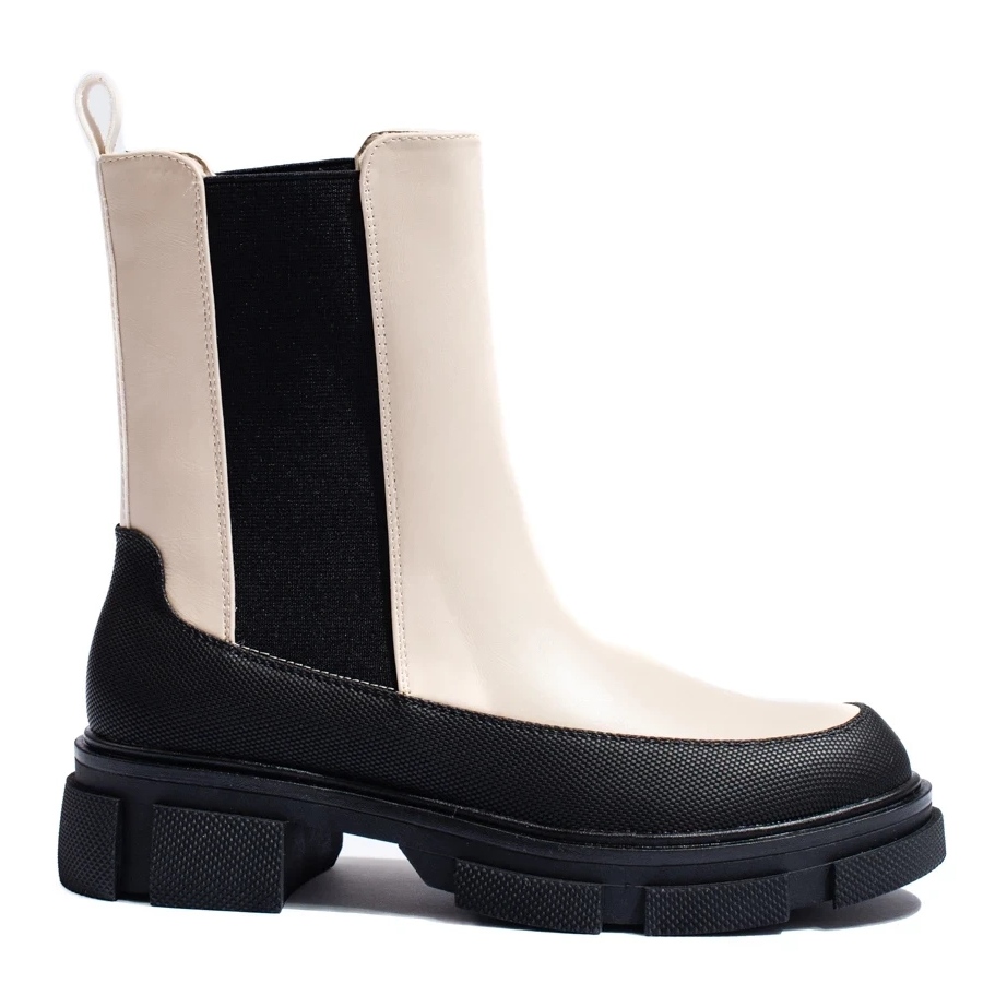 Moderan, udoban Goodin Chelseats u univerzalnoj bež i crnoj vezi. Izrađena od ekološke kože, izolirane unutrašnjosti i tekstilnog uloška osigurava toplinsku udobnost i praktičnost uporabe u sezoni jeseni -Winter -wiosna. Model koji posegne za gležnjem, na stabilnom, niskom klinu idealan za svakodnevni, ležerni stil.