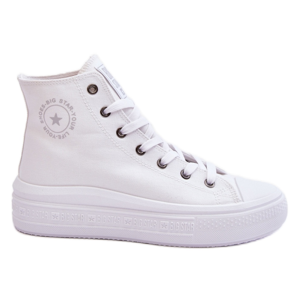 Bijele tenisice visoke žene velike žene savršen su izbor za žene koje se usredotočuju na stil, udobnost i moderan izgled. Izrađene od visokokvalitetnog tekstilnog materijala, ove bijele tenisice razlikuju se ne samo atraktivnim dizajnom, već i funkcionalnošću. Sa strane gornjeg dijela nalazi se ukrasni logotip Big Star, koji im daje karakter i čini ih savršenim dodatkom svakoj ležernoj stilizaciji.