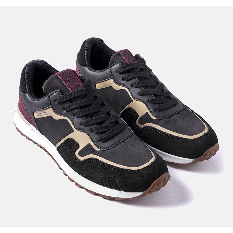 Moderne i udobne tenisice s velikim zvijezdama koje će savršeno nadopuniti vaše svakodnevne i ležerne stilizacije. Klasična, crna boja s bež potplatom čini cipele univerzalnim i jednostavnim za kombiniranje s raznim setovima odjeće.