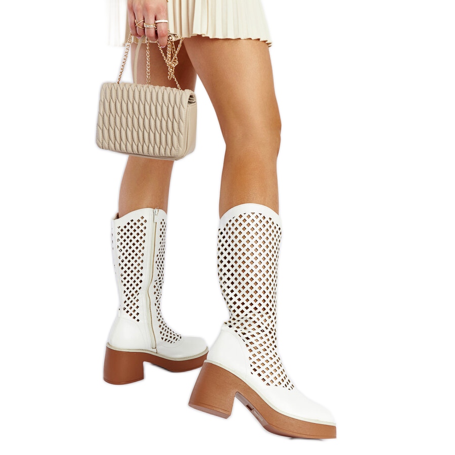 Inna marka Bijele ažurne Anahola čizme na visoku petu bijela