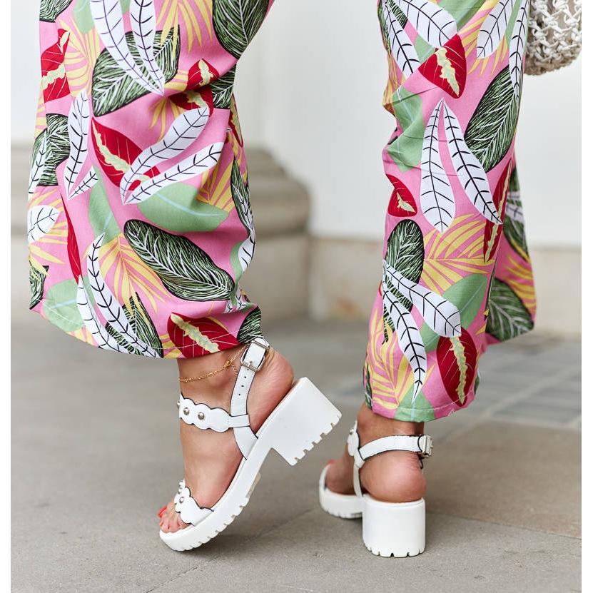 Izrađene od visokokvalitetne ekološke kože, sandale osiguravaju udobnost nošenja tijekom cijelog dana. Bijela boja im daje univerzalni karakter, a ukrasni kamenčići dodaju suptilan dašak sjaja. Zahvaljujući udobnoj potpetici od 5 cm savršeno se uklapaju u svakodnevne ali i elegantnije kombinacije.