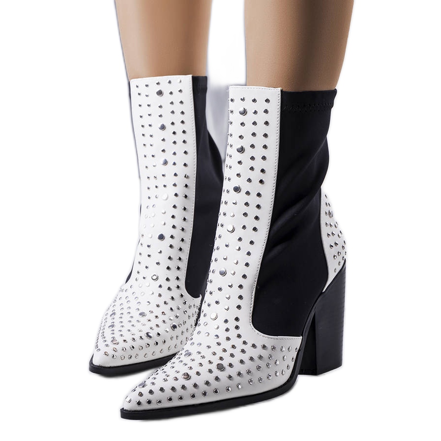 Bijele čizme ukrašene klinovima i stilski i udobne