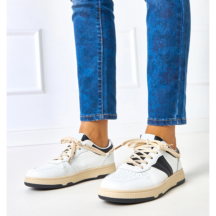 Tenisice vezane za čipke u boji umetaka omogućuju vam da savršeno odgovaraju stopalu. Visina platforme od 3 cm čini ih ne samo elegantnim, već i ugodnim za duže dane. Model je dostupan u standardnom numeriranju, što olakšava odabir prave veličine.