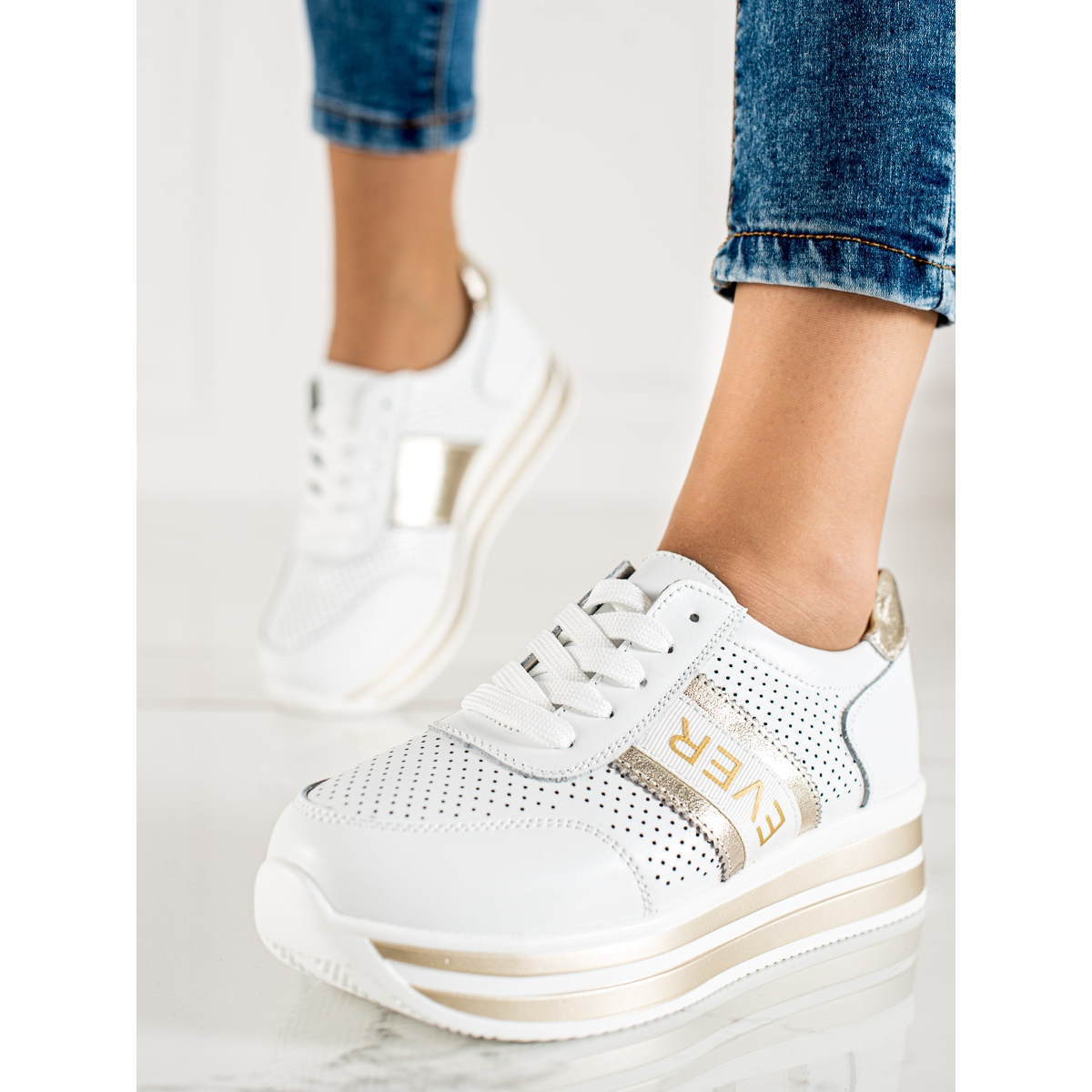 Pojedinosti: SHELOVET Bijele kožne tenisice na Goodin platformi bijela