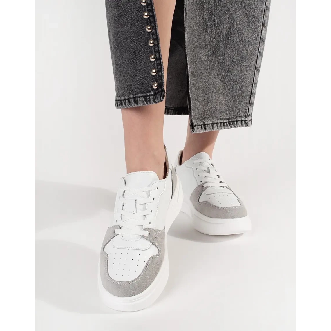 Izrađena od visokokvalitetne prirodne kože, i vanjskog dijela i umetka, osiguravaju izdržljivost i udobnost nošenja cijeli dan. Njihova klasična, bijela boja savršeno ide s različitim stilovima, dodajući svježinu i lakoću.