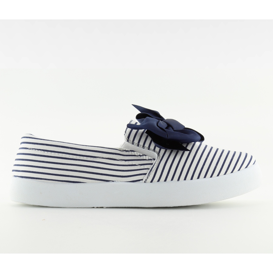 Mornarske patike B860 bijelo/tamnarsko plave - lagane, ljetne tenisice u mornarskom stilu, savršene za blagdanske šetnje i svakodnevni styling. U potpunosti izrađene od tkanine, oduševljavaju klasičnom kombinacijom bijele i tamnoplave te ukrasnom mašnom koja dodaje ženstveni karakter. Bijeli, sportski potplat (visina platforme/peta 2,0 cm) naglašava casual stil i osigurava svakodnevnu udobnost.