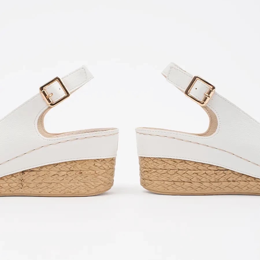 Otvorena peta čini ove sandale prozračnima i udobnima, što ih čini odličnim izborom za tople dane. Klasičan kroj espadrilama, bez vrha, dodaje lakoću, a bijela boja savršeno ih pristaje kako uz svakodnevne tako i uz elegantnije kombinacije. Sandale su elegantnog, ležernog stila, što ih čini univerzalnim dodatkom za razne prigode - od zabava do svakodnevnih izlazaka.