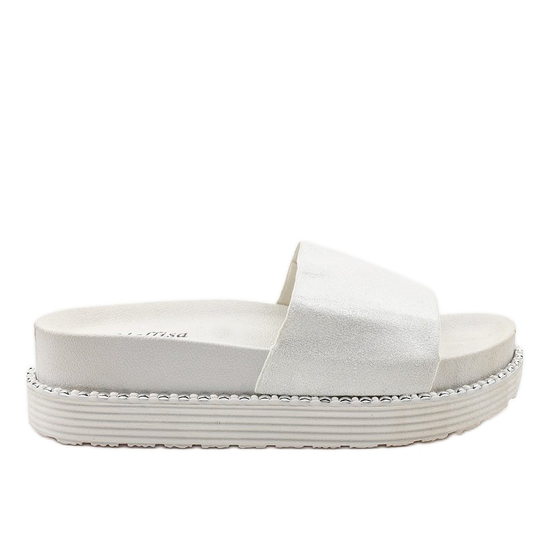Detalji: Bijele papuče na debelom potplatu, antilop od brokata TL3808 bijela