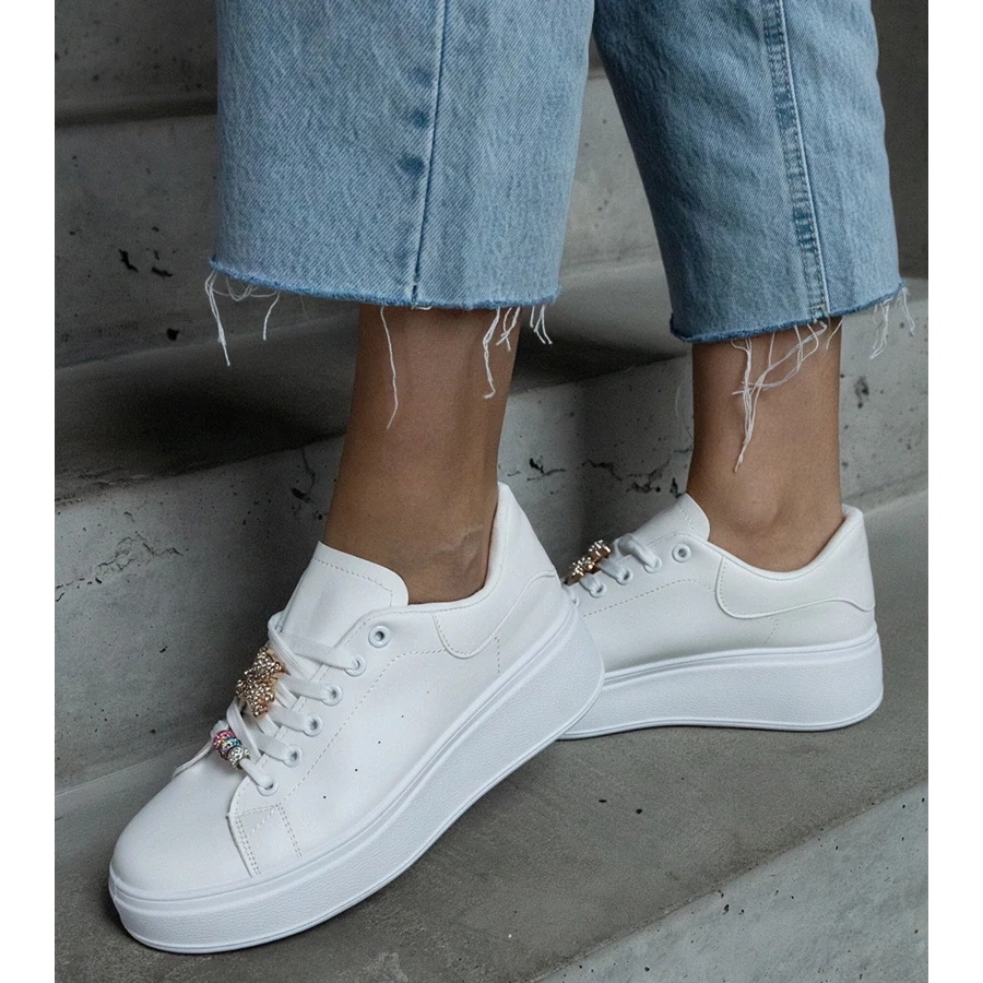 Detalji: D/CEO Bijele platform tenisice ukrašene plišanim medvjedićem Mavien bijela