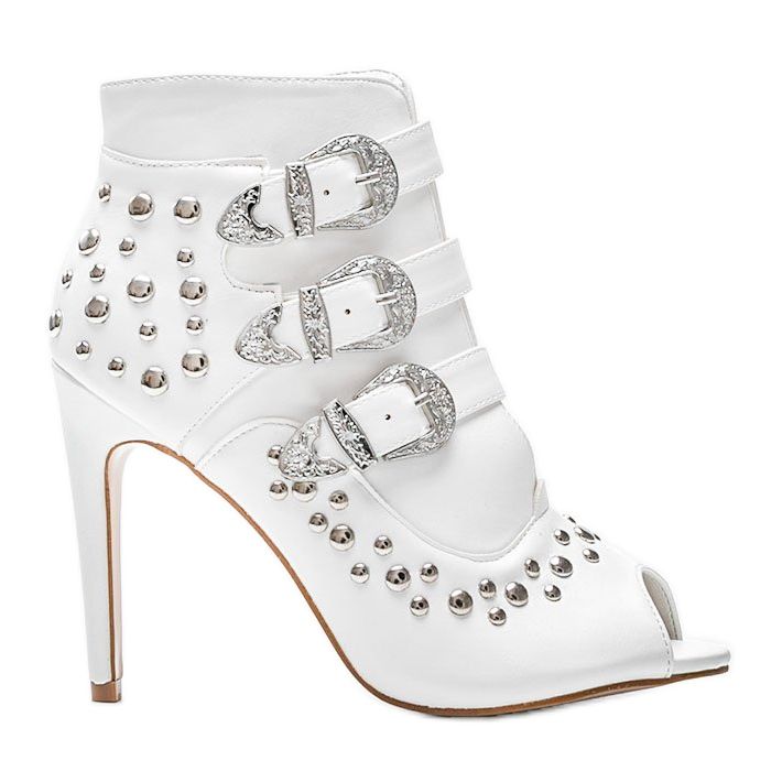 Predstavljamo bijele Abigail salonke na visoku petu, koje spajaju eleganciju s jedinstvenim stilom. Ove visoke potpetice odlikuju se prekrasnim završetkom, zahvaljujući ukrasnim nitnama i privlačnim ukrasnim kopčama koje im daju karakter. Kopče su pričvršćene na elastične trake, što osigurava savršeno pristajanje uz nogu i udobnost nošenja.