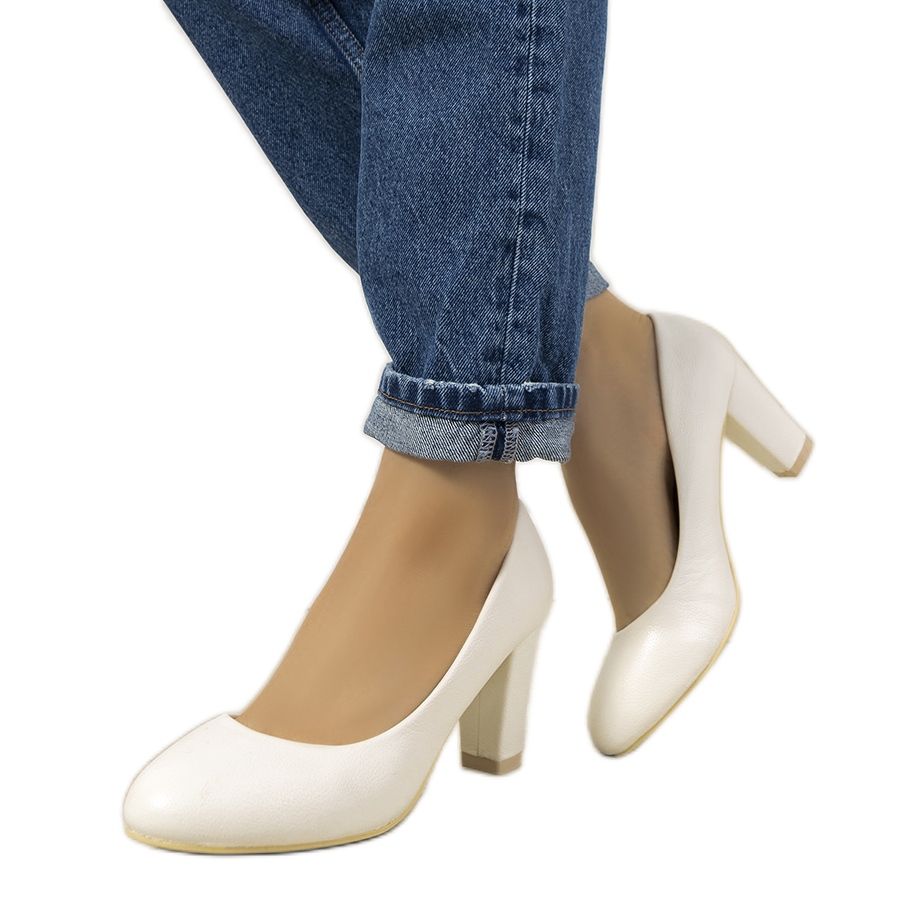 Potpetica visine 7,5 cm na bloku spaja udobnost i eleganciju, što ove cipele čini savršenim izborom za razne prilike - od posla do večernjih izlazaka. Bež plastični potplat savršeno se slaže sa svijetlom bojom cipela stvarajući skladnu cjelinu.