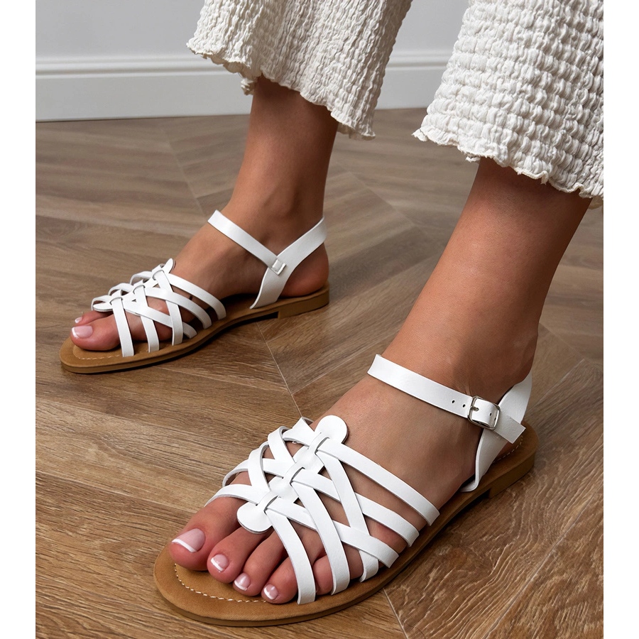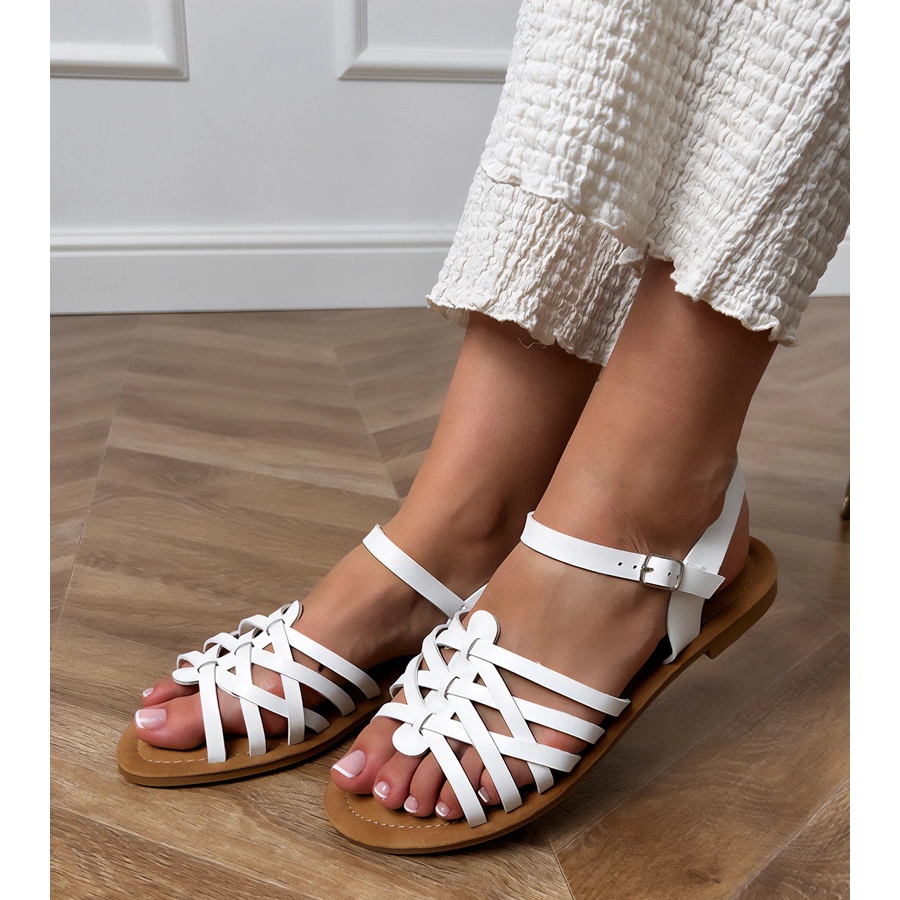 Detalji: Bijele sandale omotane na ravni potplat bijela