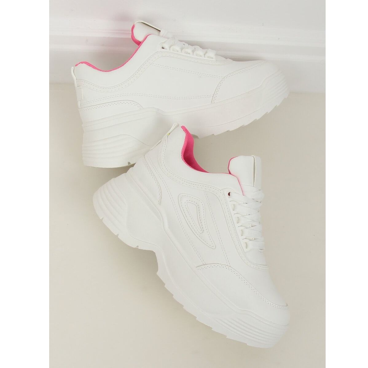 Pojedinosti: Bijele sportske cipele LA78P Fushia s visokim potplatom bijela ružičasta