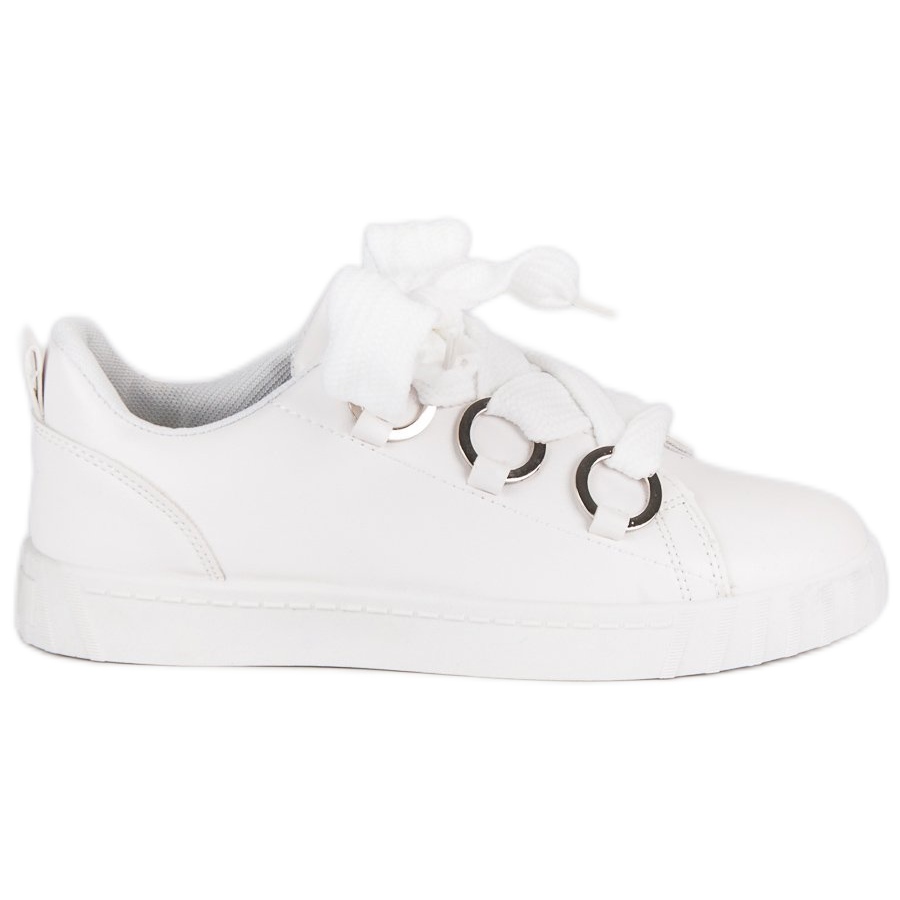 Otkrijte jedinstveni stil s bijelim Super Me tenisicama na vezanje, koje spajaju sportsku ležernost s elegantnim izričajem. Ove moderne ženske cipele odlikuju neobične, široke vezice na upečatljivim metalnim srebrnim prstenovima, što im daje jedinstven karakter.