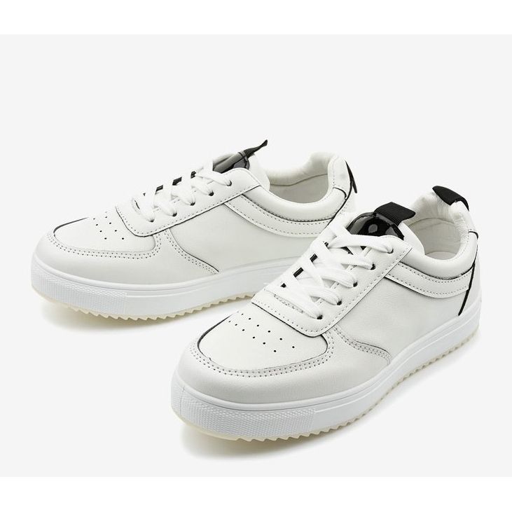 Bijele tenisice s crnim umetcima KK-203 savršen su izbor za žene koje cijene udobnost i moderan izgled. Izrađena od visokokvalitetne eko kože, obuća se ističe ne samo elegantnim dizajnom, već i funkcionalnošću. Crni detalji na bijelom gornjem dijelu daju im moderan karakter, a lakirana završna obrada dodaje im atraktivnost.