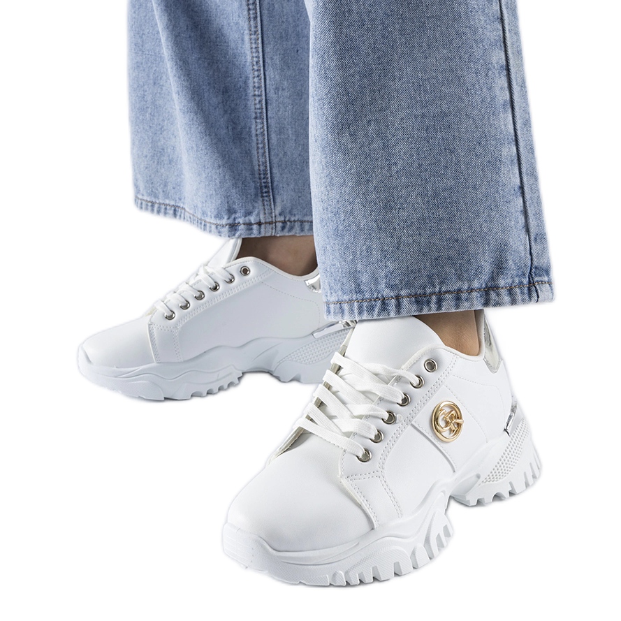 Ove tenisice s čipkama -up izuzetno su svestrane - savršeno se stapaju s obje traperice, kao i haljinama ili suknjama, što vam omogućuje stvaranje različitih stilova. Bijela boja je sjajna baza koja odgovara svim nijansama i dizajnu, zahvaljujući koje će ove tenisice biti odličan dodatak bilo kojem garderobi. Donose malo sportske slabe i svježine, a njihov masivni potplat jamči stabilnost i udobnost.