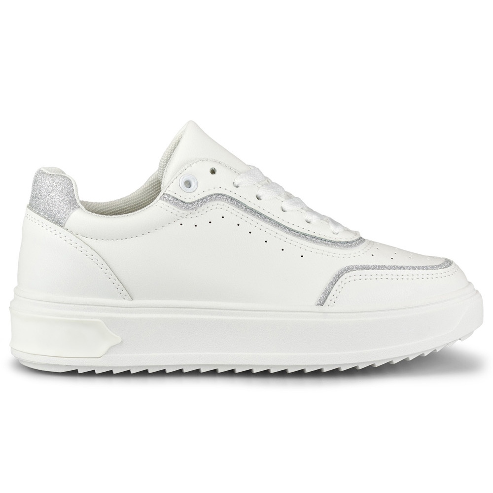 Klasične, ženstvene i udobno-bijele tenisice sa suptilnim srebrnim naglascima obavezne su sezone proljeća/ljeta. Izrađena od visokokvalitetne ekološke kože, na stabilnoj platformi od 2,5 cm, kombinirajte sportski lik s modernim, urbanim stilom. Savršeno za svakodnevno - za traperice, haljine ili ležernu suknju.