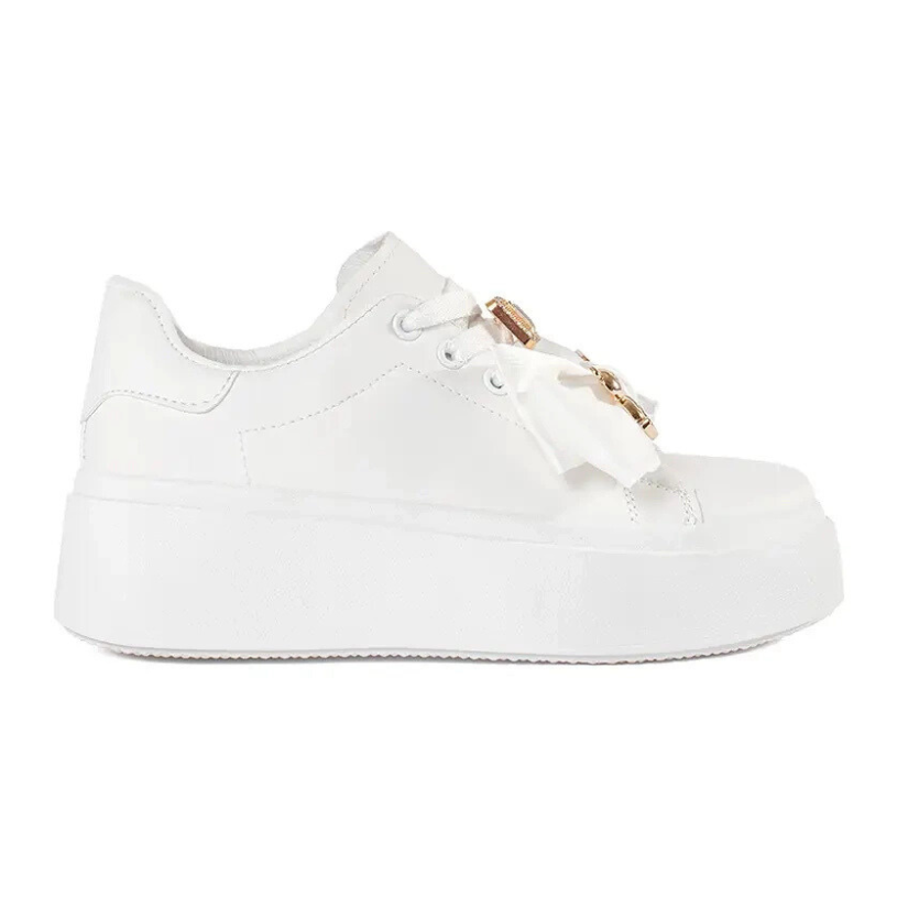 Stabilnost modela pruža plastični potplat visine od 5 cm, a platforma visoke 4 cm dodaje suptilan stil, odgovarajući različitim stilovima. Zlatni naglasci u kombinaciji s klasičnim bijelim tenisicama daju im luksuzni karakter, zbog čega rade i svakodnevno i u elegantnijim prilikama.
