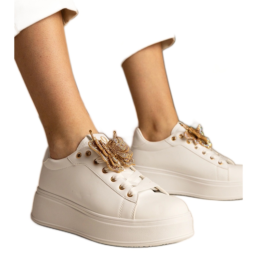 Detalji: Bijele tenisice ukrašene leptirom s cirkonima bijela