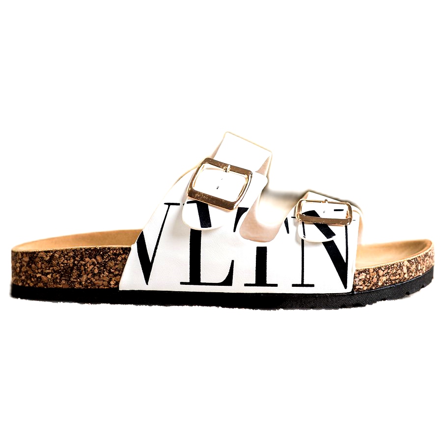 Bijele udobne eko kožne papuče - jednostavan, elegantan model svaki dan