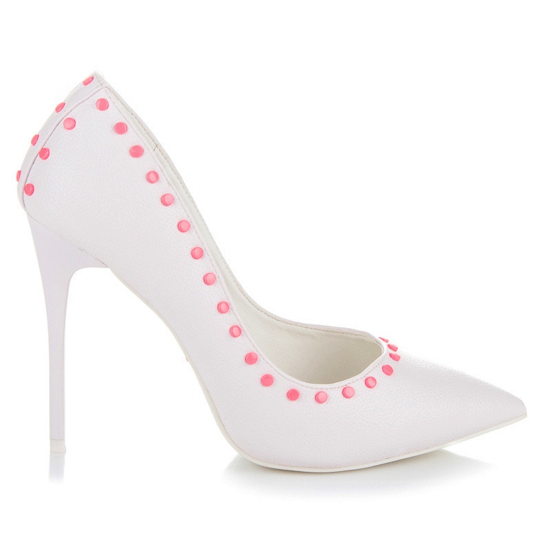 Predstavljamo bijele štikle Vices New Collection - elegantan dodatak koji bi trebao biti u ormaru svake žene. Ove sofisticirane cipele s visokom petom od 11 cm odlikuju se ne samo svojim tankim dizajnom, već i originalnim ukrasom u obliku ružičastih točkica koje im daju jedinstven karakter.
