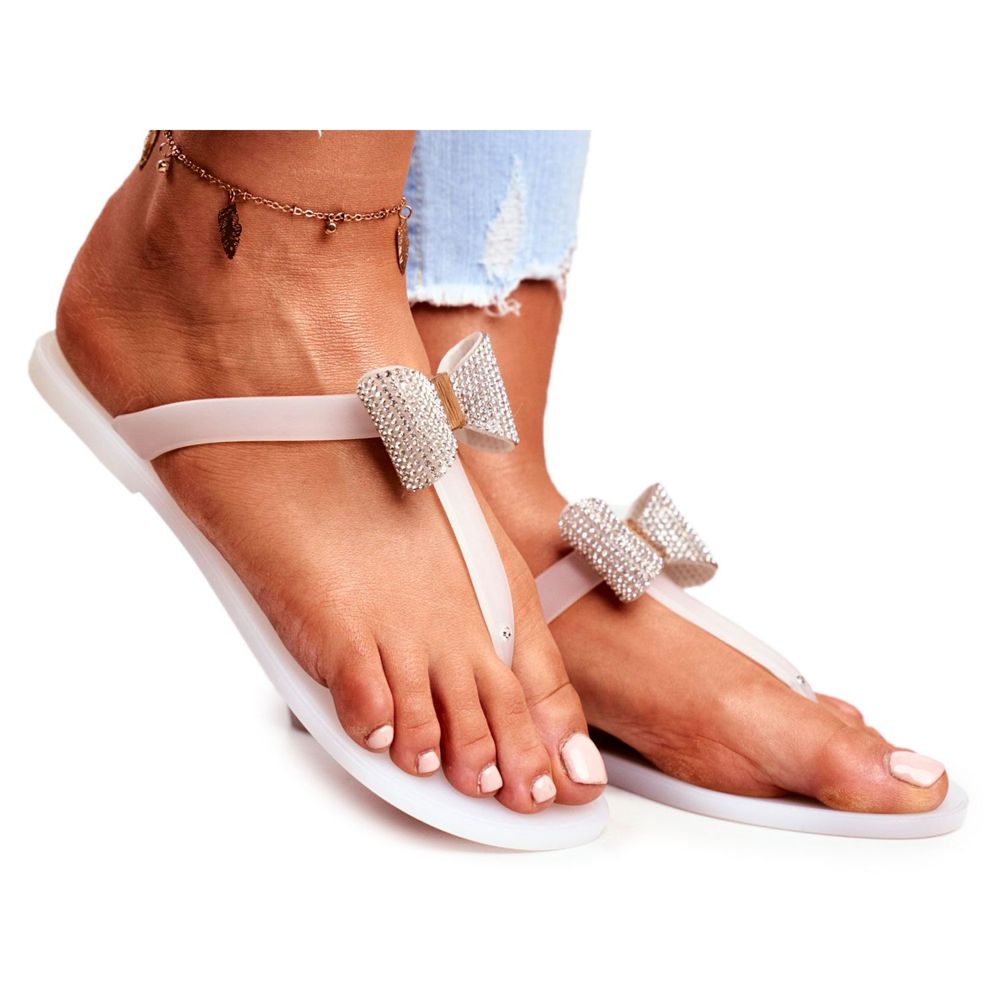 Detalji: LU BOO Bijele ženske papuče Meliski s mašnom od šljokica Morello bijela