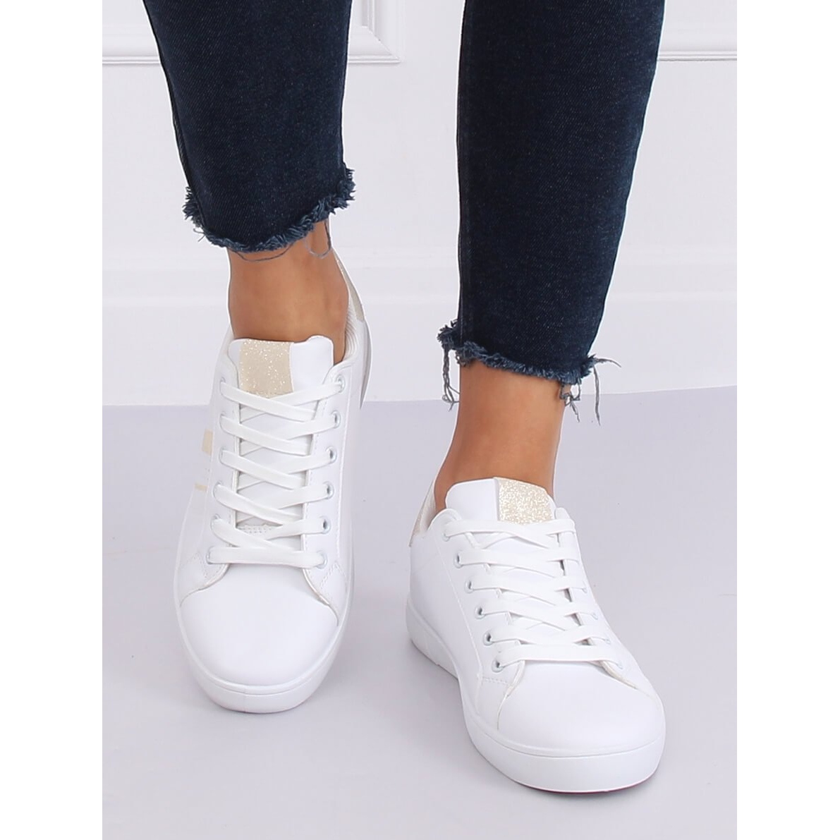 Inna marka Bijele ženske tenisice K-388 BIJELO / ZLATNO bijela