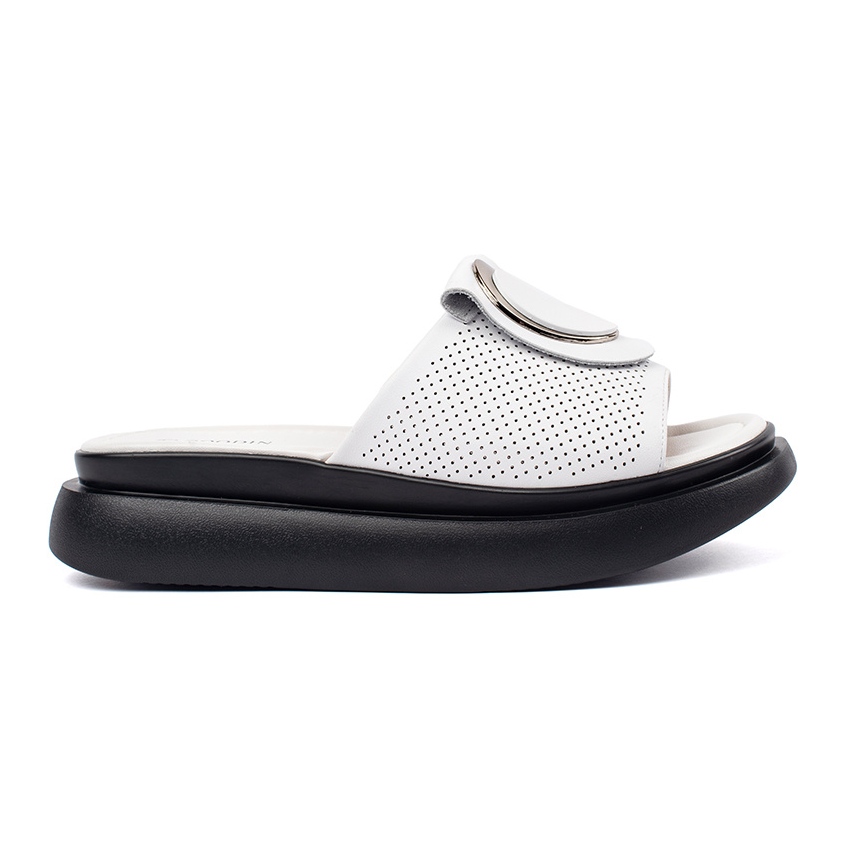 Unutar zakrilca nalazi se ekološki kožni umetnik, osiguravajući odgovarajuću ventilaciju stopala i uklanjanje viška vlage. Bijela i bijela boja čini se da se ovi flaps lako prilagođava raznim stilovima-ljetnoj haljini i ležernim kratkim hlačama.