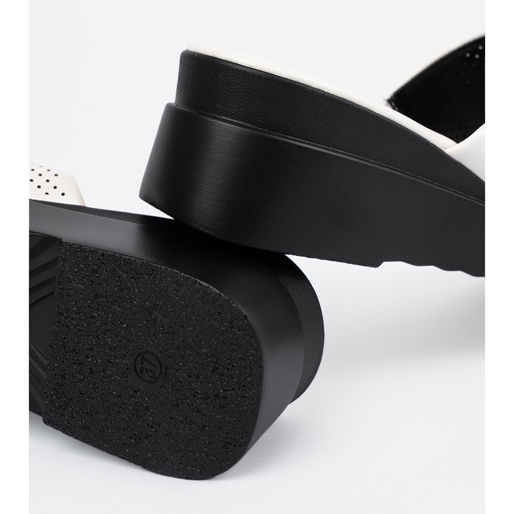 Praktični plastični potplat jamči adekvatno prianjanje i udobnost nošenja, čineći ove flip flops idealnim pratiteljem i u šetnji i tijekom sastanka s prijateljima. Klasična kombinacija bijele boje s crnim potplatom lako ih prilagođava svojim omiljenim ljetnim haljinama ili povremenim stilovima trapera.