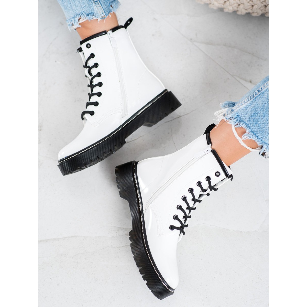 Bijele radničke čizme Vinceza prijedlog su za žene koje se žele izdvojiti iz mase. Zahvaljujući univerzalnoj boji i jednostavnom uzorku, ove cipele savršeno pristaju uz različite stilove - od ležernog do više rockerskog. Oni će bez sumnje biti moderan naglasak u svakom ormaru!
