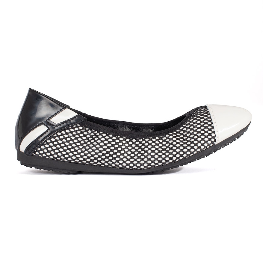 Detalji: Bijelo-crne balerinke ukrašene mrežicom bijela