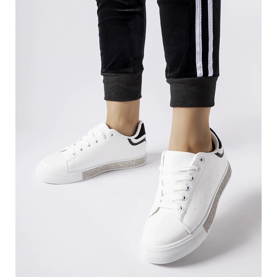 Bijele i bijele tenisice Dina s moderom cirkona, udobne i sa naznakom sjaja