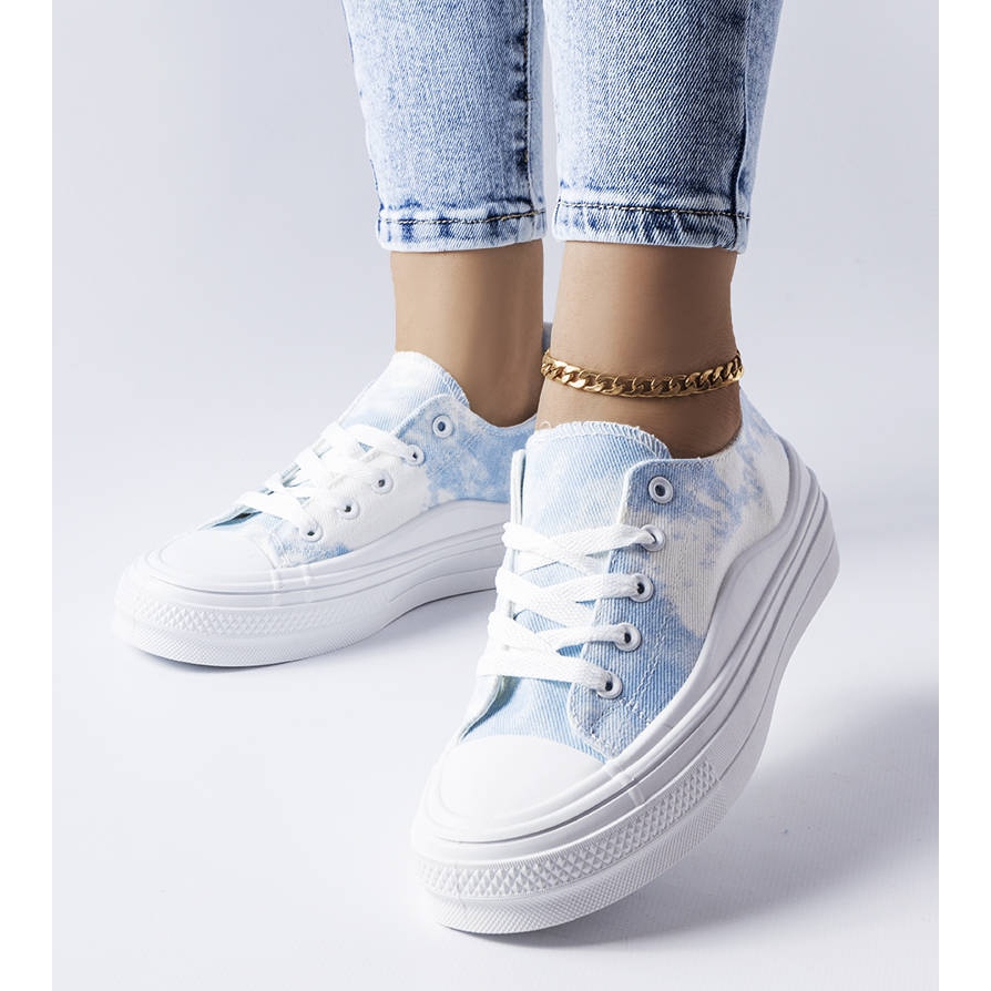 Klasične tenisice Blais u nijansama bijele i plave savršen su izbor za ljetne dane. Jasan, povišeni potplat (približno 5 cm) dodaje moderan karakter i optički mršav figura, a lagana tkanina gornji dio jamči udobnost. Model je vezao na čipke, s okruglim nosom - univerzalnim i lako se kombinirati s mnogim stilovima.
