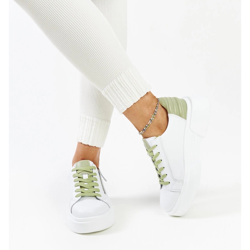 Pojedinosti: Bijelo-zelene kožne tenisice Atyaf bijela