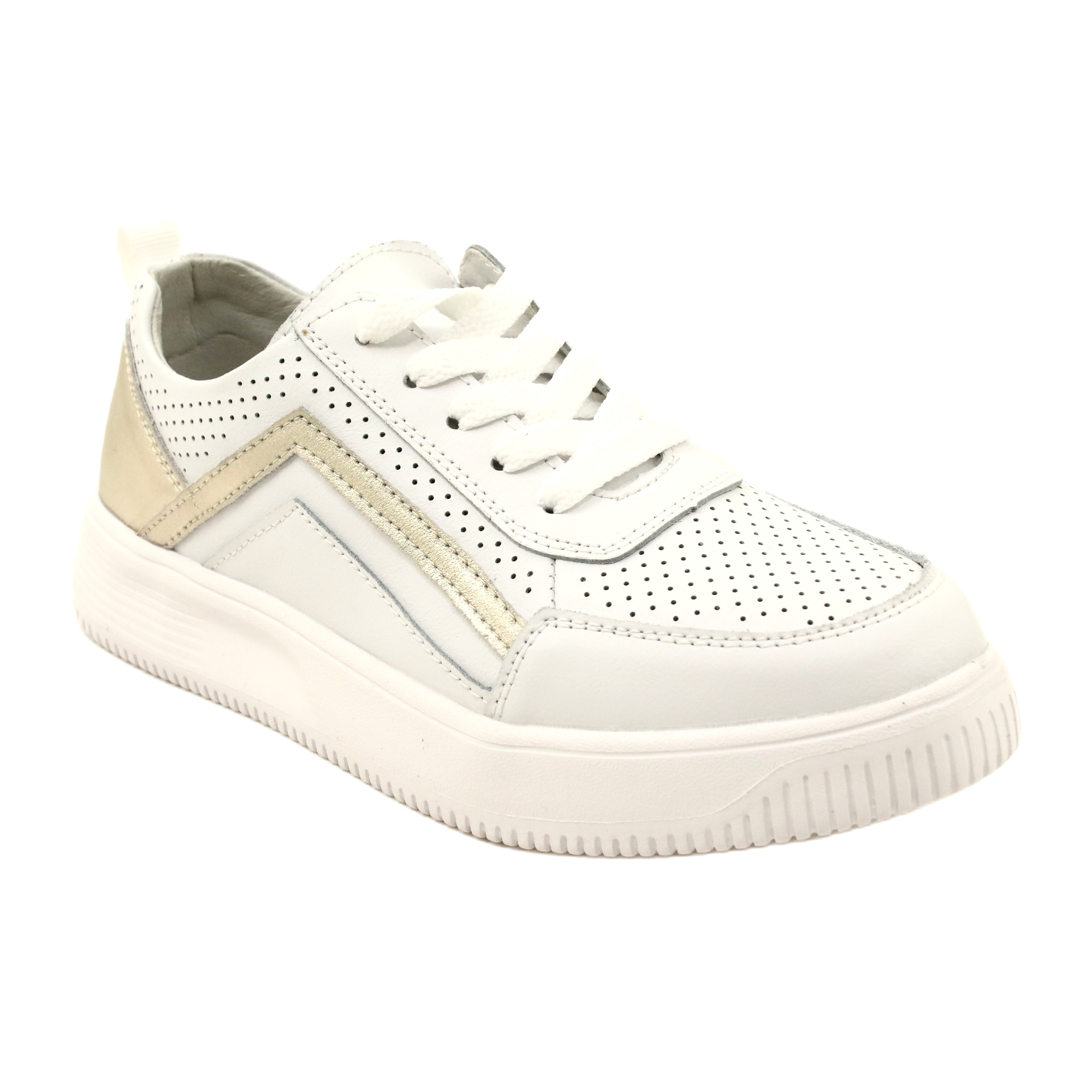 Bijele i zlatne kožne tenisice vezale su Evento 23PB08-5389-Elegance susreće udobnost