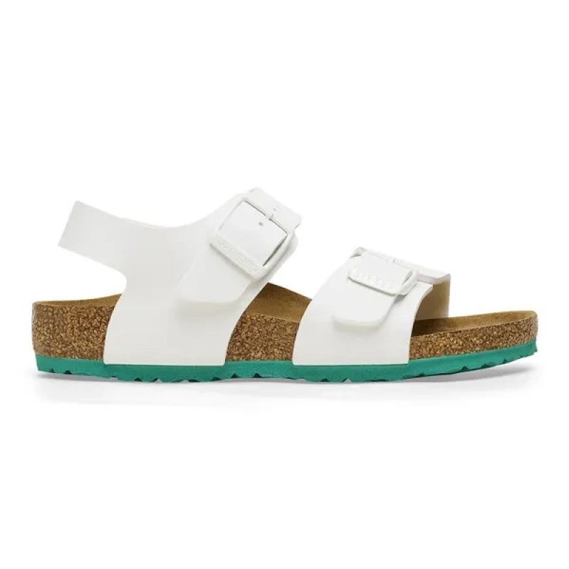 Birkenstock New York Kid BS 1026836 Sandale u pustinjskom tlu White/Green savršen je izbor za aktivnu djecu. Stvoreni su za najmlađe, kombinirajući izdržljivost s modernim dizajnom. Izrađeni od inovativnog Birko-Flor® materijala, karakterizira ih otpornost na oštećenja, što ih čini savršenim za svakodnevnu upotrebu.