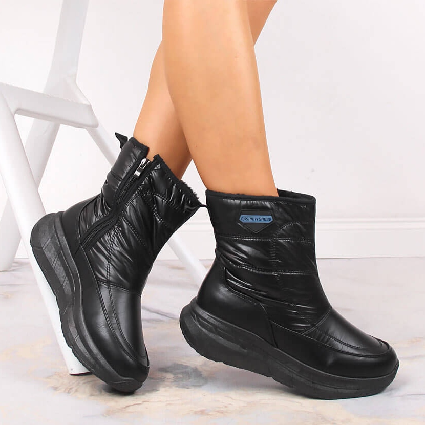 Filippo crne snježne čizme savršene su cipele za hladne dane - kombiniraju udobnost izolacije s modernim, ležernim izgledom. Izrađene od ekološke kože, izolirane s krznom iznutra i opremljeni udobnim učvršćivačem s patentnim zatvaračem, radit će tijekom šetnji, svakodnevnih stilova u gradu i laganih izleta iz grada.