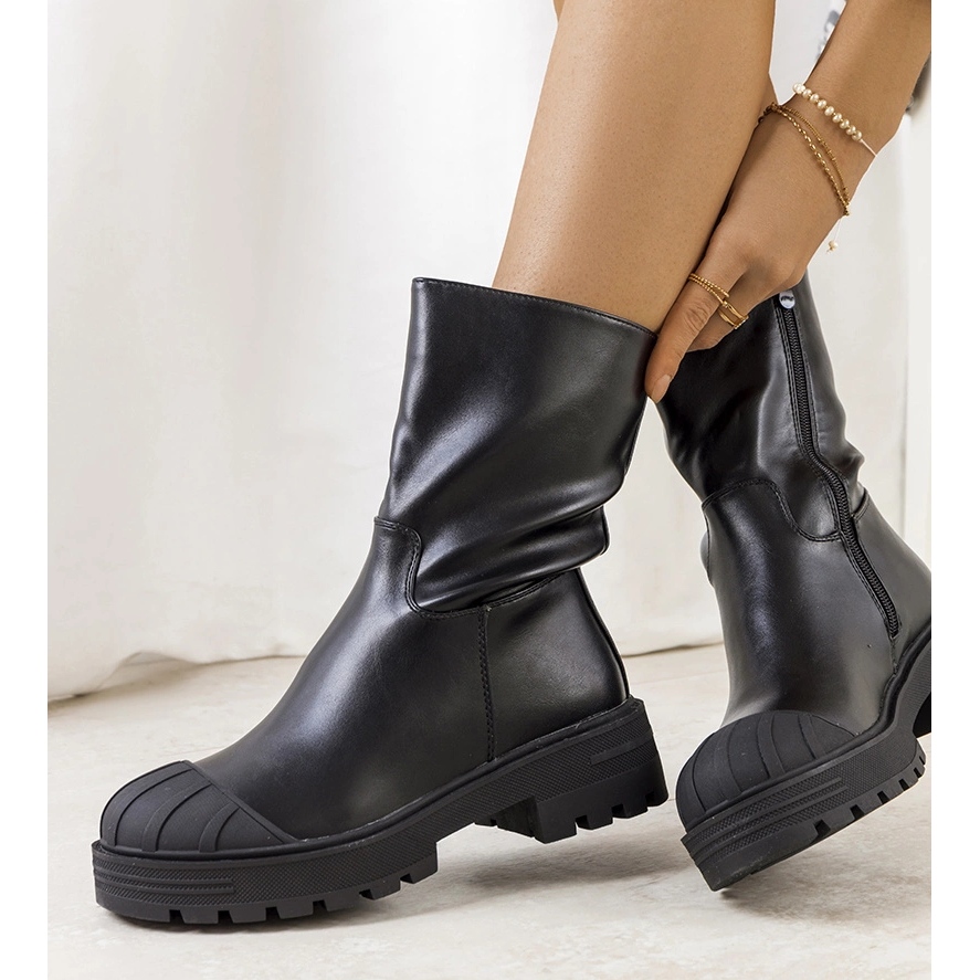 Stilski crne sville traperi savršeni su dodatak jesenskim i zimskim stilizacijama. Kombinirat ćete ih s kaputom i kožnom jaknom - oni će izgledu dati moderan, feistski karakter. Gornja izrađena od ekološke kože jamči dobru kvalitetu i udobnost nošenja, a gumeni nos s utiskivanjem razlikuje model od klasičnih stilova.