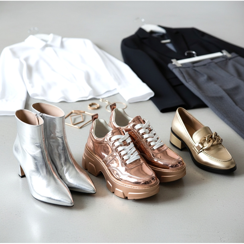 Ako ste hrabri, metalik smeđa, srebrna ili zlatna boje su koje će biti hit u proljeće 2026. Popularne su posebno u premium kolekcijama i na kreativnijim radnim mjestima. Nosite metalik cipele uz neutralne kombinacije - crnu, bijelu, sivu - kako odjednom ne bi bilo previše bljeska. Navečer, metalik tenisice ili čizme mogu postati izvrsna nadopuna elegantnom stajlingu. Danju će moderno i moderno izgledati metalik cipele ili tenisice s platformom, pogotovo ako ih kombinirate uz minimalističku odjeću.