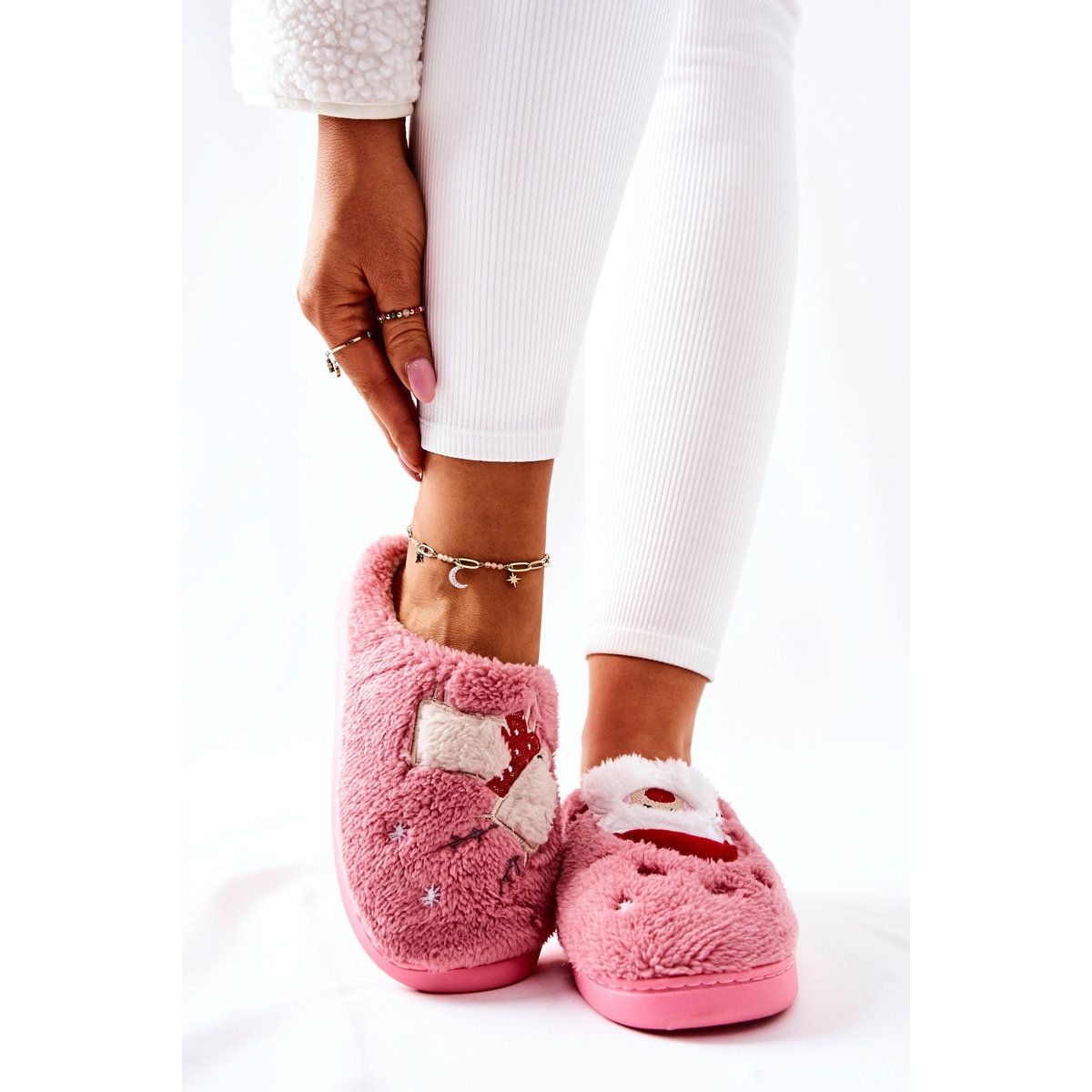 Detalji: WJ1 Božićne papuče Djed Mraz i ružičasti sobovi ružičasta