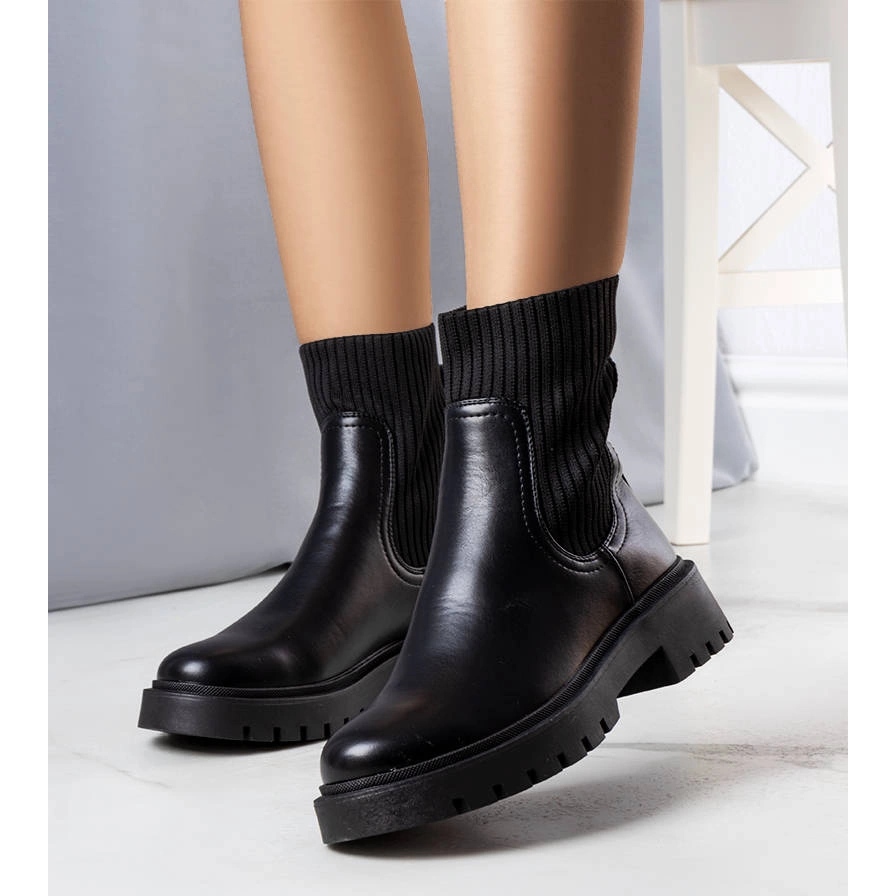 Elegantne i praktične čizme koje su savršene za zimske stililizacije. Gornji dio kombinira ekološku kožu visokog kvaliteta s elastičnom tkaninom, što jamči udobnost nošenja i boljeg. Visoki, crni gumeni potplat je moderan naglasak i izdržljiv, otporan na loše rješenje. Unutrašnjost je završena toplim materijalom koji imitira krzno - savršeno za hladnije dane.