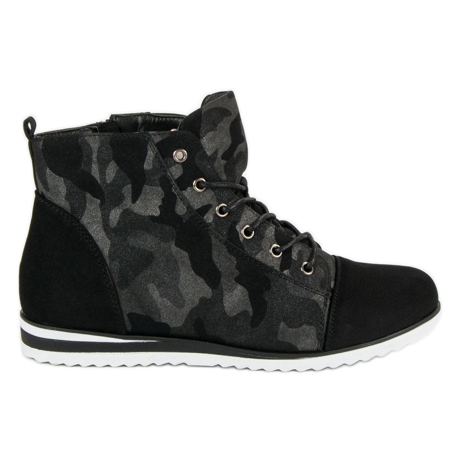 Otkrijte stil i udobnost uz Vinceza visoke tenisice u crnoj boji s modernim kamuflažnim uzorkom. Izrađene od visokokvalitetne ekološke kože, ove sportske cipele spajaju moderan dizajn i funkcionalnost. Prst i peta u klasičnoj crnoj boji lijepo odudaraju od središnjeg dijela, ukrašenog originalnim kamuflažnim uzorkom, što ih čini odličnim izborom za žene koje cijene jedinstven stil.