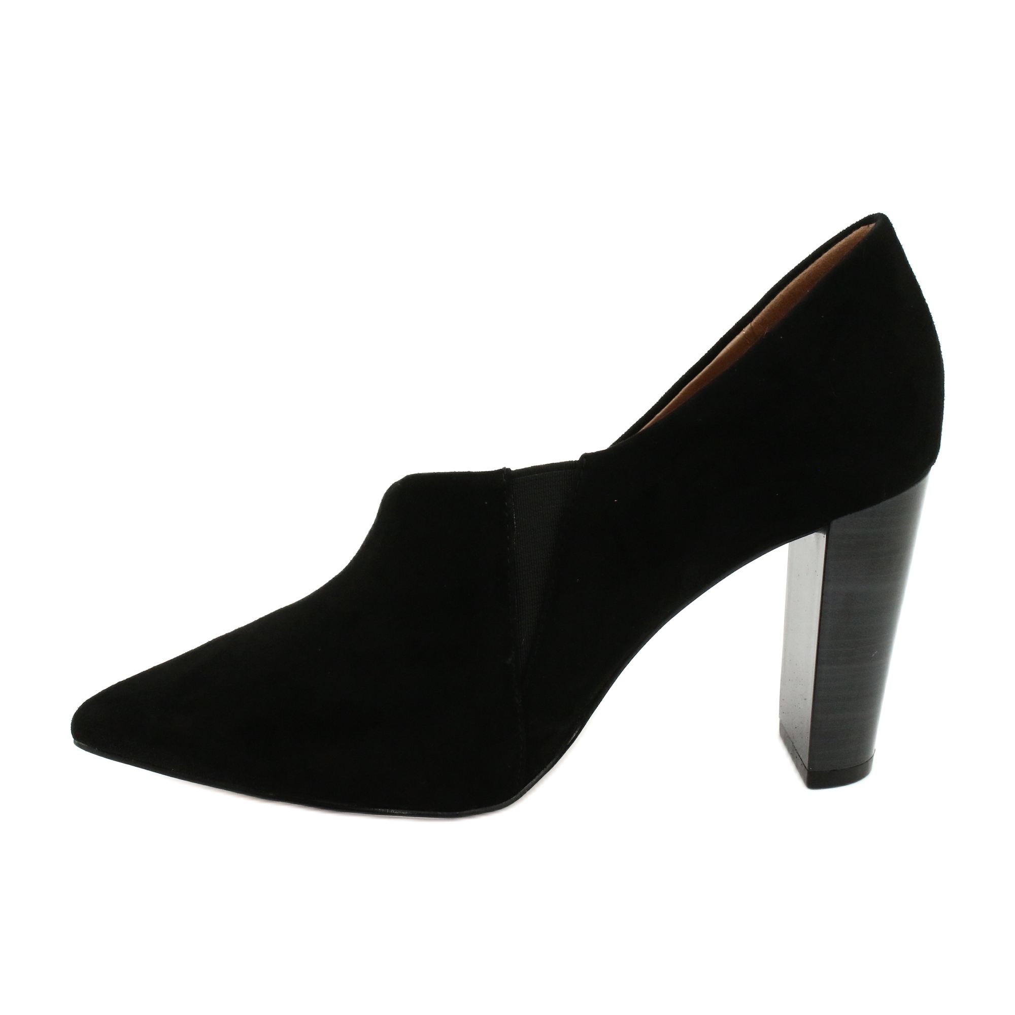 Elegantne ženske crne cipele u crnoj (crni antilop) kombinacija je klasičnog oblika i udobnosti. Izrađene od prirodne kože, s potpuno kožnom oblogom i mekim umetom, pružaju udobnost tijekom dana. Vitki, šiljasti nos i završni sloj visoke kvalitete daju im stil, a stabilna peta visoka oko 8 cm suptilno je tanka figura.