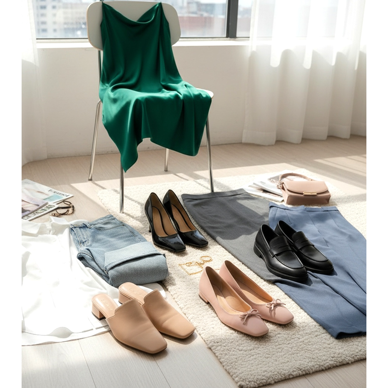 Za ured - balerinke ili mokasinke s četvrtastim vrhom uz pencil suknju ili cigaret hlače. Ovaj set je suština profesionalnog dnevnika snage 2026. Odaberite boju cipela sličnu donjem dijelu vaše odjeće kako biste optički produljili svoje noge.