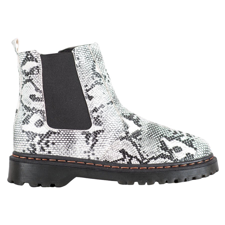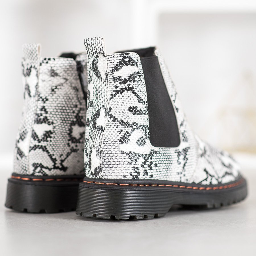 Chelsea čizme dostupne su u dvije klasične boje: crnoj i bijeloj, što im omogućuje da se lako uklope u svaki ormar. Dominantan uzorak inspiriran životinjskim motivima daje im jedinstven karakter, savršen za ljubitelje rocka i casual stila.